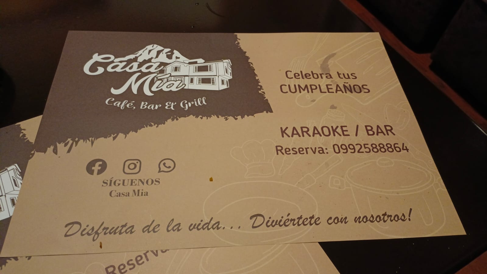 Los fines de semana el ambiente cambia de tono. El karaoke se arma y el local se transforma en el tipo de lugar donde uno termina cantando aunque no iba con esa intención. Lo interesante es que tienen ambientes separados para quienes prefieren algo más íntimo — ideal si vas con un grupo y quieres tu propio espacio sin que te vea medio Riobamba desde la mesa de al lado.