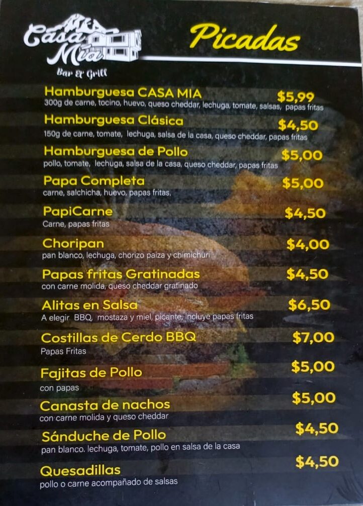 De martes a sábado desde las 5 de la tarde, el olor a parrilla ya avisa que Casa Mia Bar & Grill está lista.