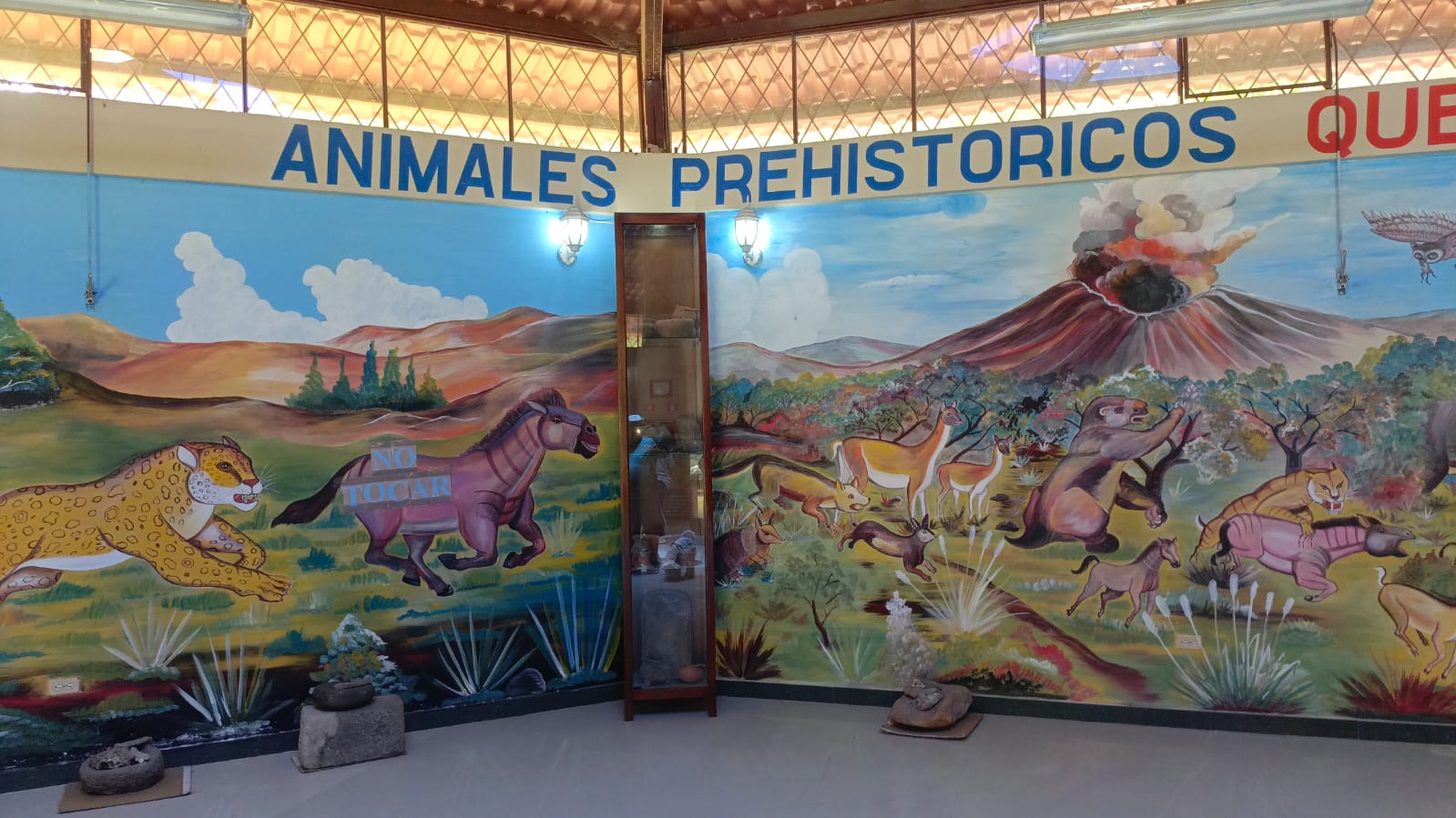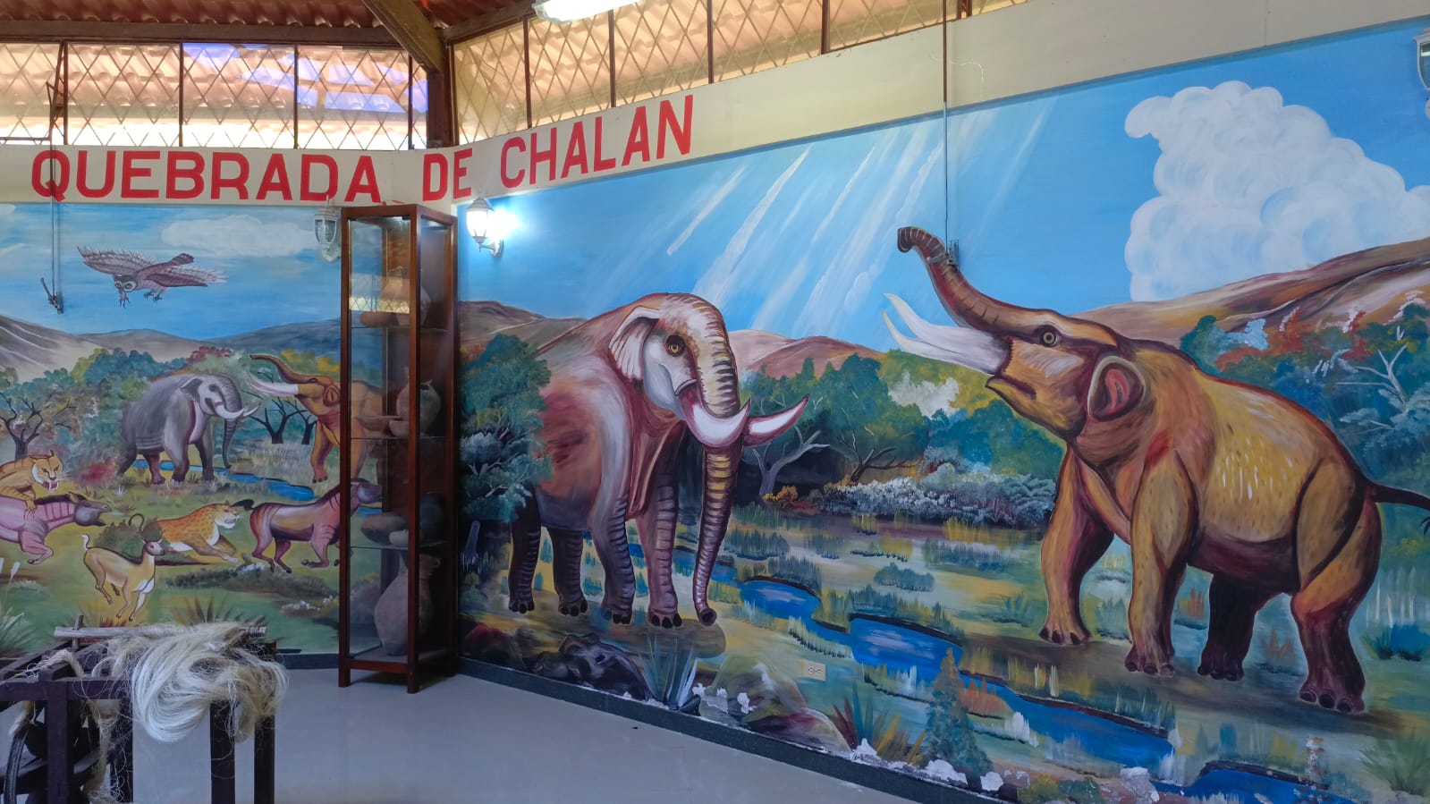 El lugar reúne lo que la quebrada ha ido soltando con cada aluvión, con cada temporada de lluvias: fósiles de mastodontes, esqueletos de caballos andinos prehistóricos, y piezas arqueológicas de la cultura Puruhá — vasijas, cántaros antropomorfos, orejeras con formas de caras. Todo encontrado aquí, en este rincón de tierra roja entre Punín y Licto.